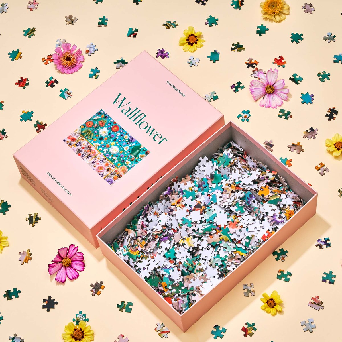 At 1500 pieces, Wallflower is Piecework's biggest puzzle to date and a full-on petal-palooza. Don't be shy — this delightful floral spread is pretty enough to encourage even the most novice puzzlers to blossom.