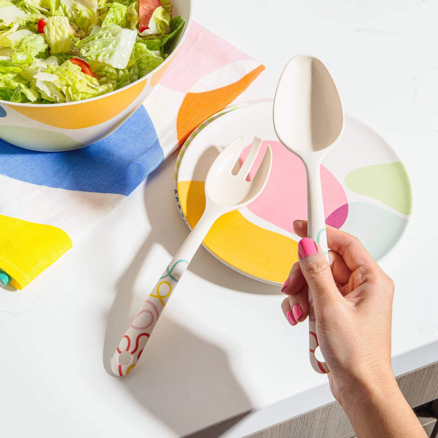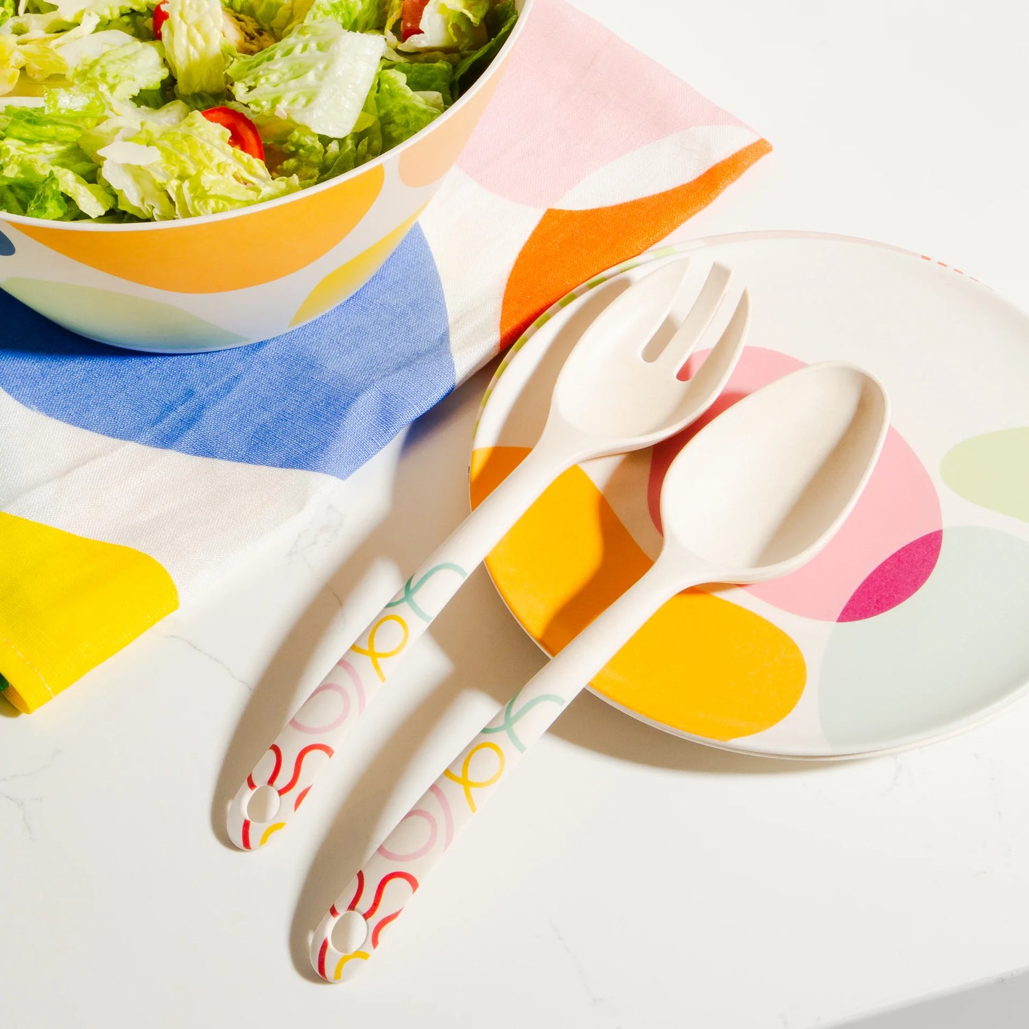 Entertain and serve in style without having to use single-serve plastic. The colorful squiggly pattern goes perfectly with the rest of our bamboo tableware and is sure to collect countless compliments from your guests.