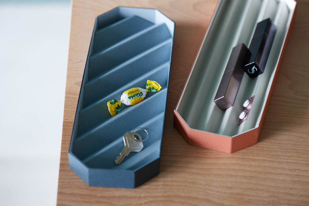 Pleats Tray is created by the craftsmen of Taisei Shiki, based in Osaka. Using a half-cut punching technique, the pleats form a fun contrast to the minimalist design of the tray, creating a perfect space to store your little knick-knacks.